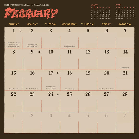 Classic Horror Movies 2026 Wall Calendar
