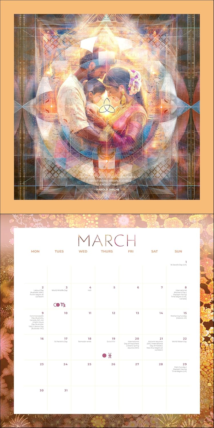 Each month features inspiring quotes from sages throughout history and stunning artwork by spiritual artist Melissa Williams, whose intuitive, nature-infused style evokes a sense of inner peace and cosmic connection.
