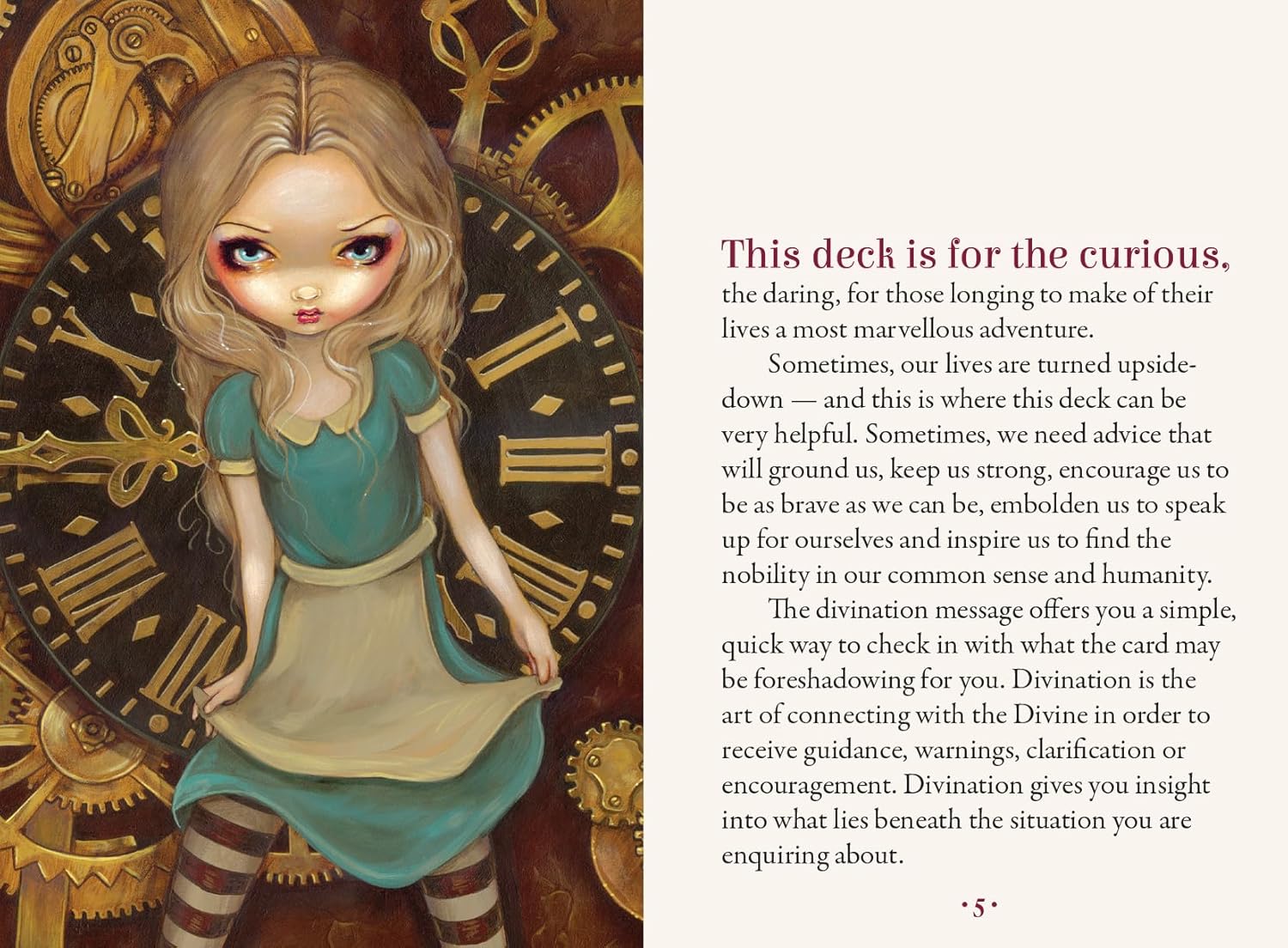 Welcome to this whimsical, delightful pocket oracle, filled with the wit and wisdom of Wonderland. Inspired by Alice's most famous insights and adventures, you'll discover beings whose messages will help you find your way through the rabbit holes, labyrinths, pools of tears, mad tea parties and unjust courts of life. Prepare to meet the best-loved characters of Wonderland, including the Cheshire Cat, the White Rabbit and the Mad Hatter, all captured in stunning paintings by acclaimed artist Jasmine Becket-Griffith. Beautifully written by beloved author and witch Lucy Cavendish, this rich and imaginative deck is a true collector's item. Alice: The Wonderland Oracle is for the curious, the daring, and those longing to make of their lives the most marvellous adventure.