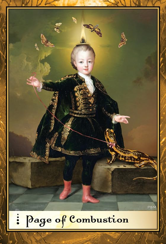 Boadicea's Tarot of Earthly Delights is an incandescent medley of collaged images drawn from Western culture and beyond, dense with beautiful and amusing details that enhance divinatory nuance and deepen interpretations. Comprising 80 cards, Boadicea's nods toward the Rider-Waite-Smith while also providing a fresh visual interpretation, using assembled fine art from antiquity through the Golden Age and spiced with razor-sharp wit and wisdom. With minor suits dubbed Combustion, Tentacles, Aether, and Fungi, this gloriously mischievous deck features squid, octopi, mushrooms, nudibranchia, and narwhals in starring roles.