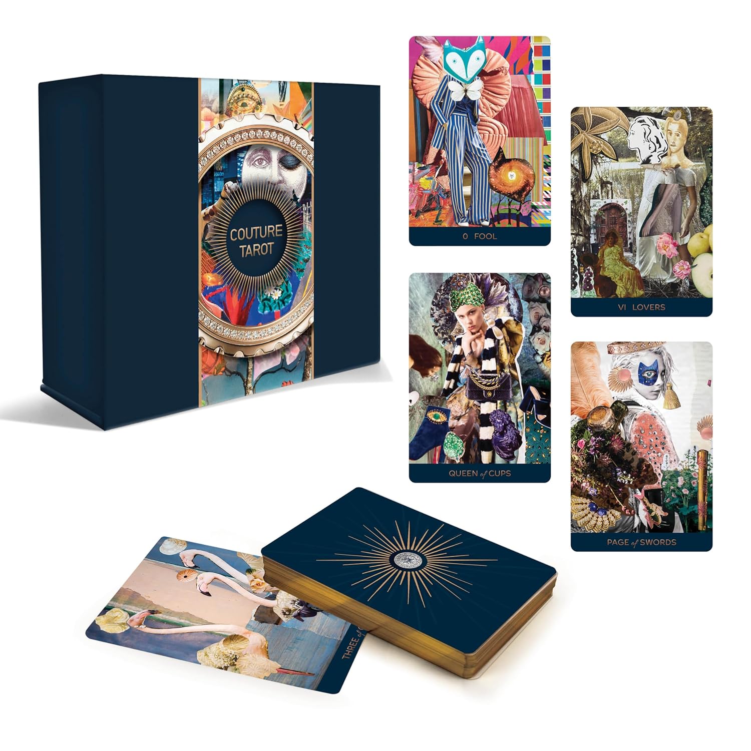 Couture Tarot reenvisions the archetypes of the Tarot through the lens of couture fashion and collage art. The colorful cards feature meticulously arranged images compiled from US and international fashion magazines such as Vogue, Harper's Bazaar, Elle, Tatler, and more.