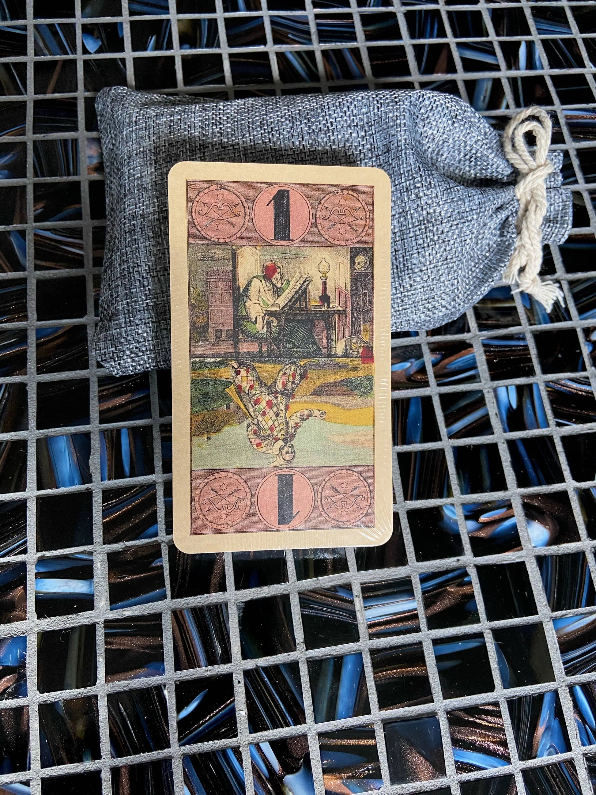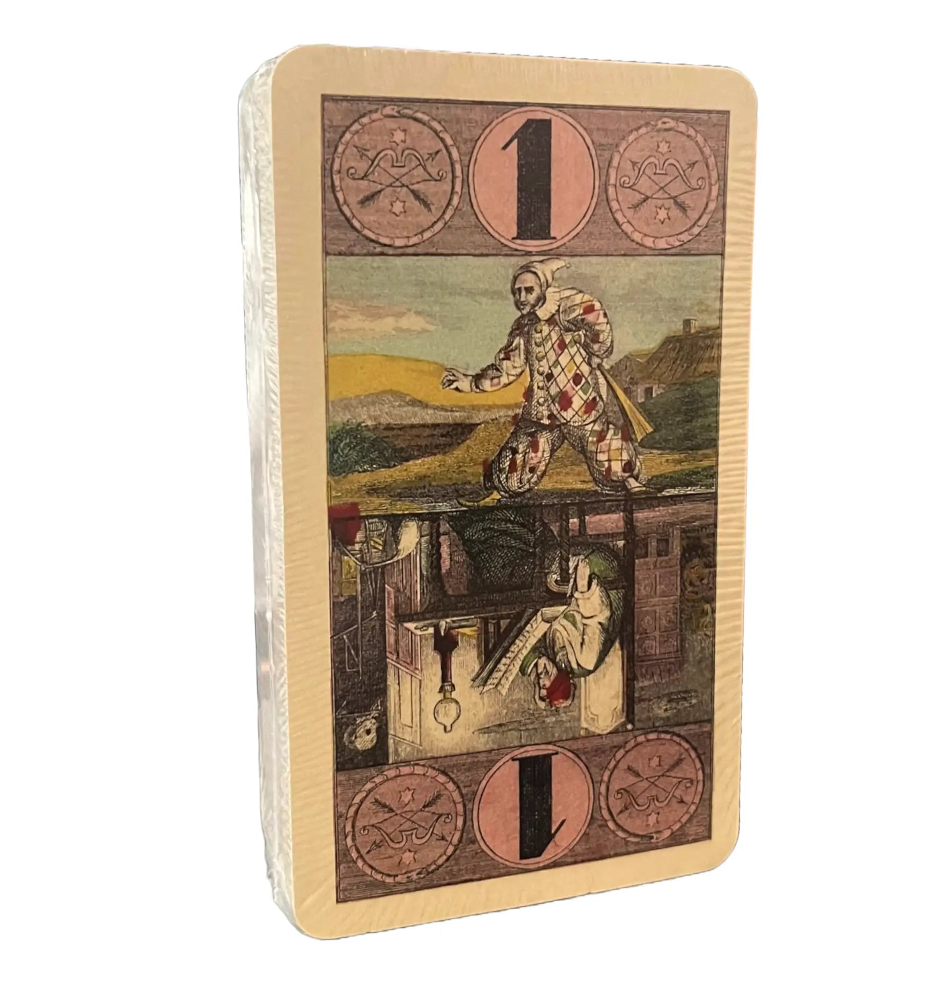 Step into the classic world of 18th-century German tarot with the German Tarot Deck (Tarot Allemand à deux têtes, Der Taroc). This full-size deck is designed for advanced tarot practitioners and is sold without a guidebook, offering a pure, historical experience for experienced readers.