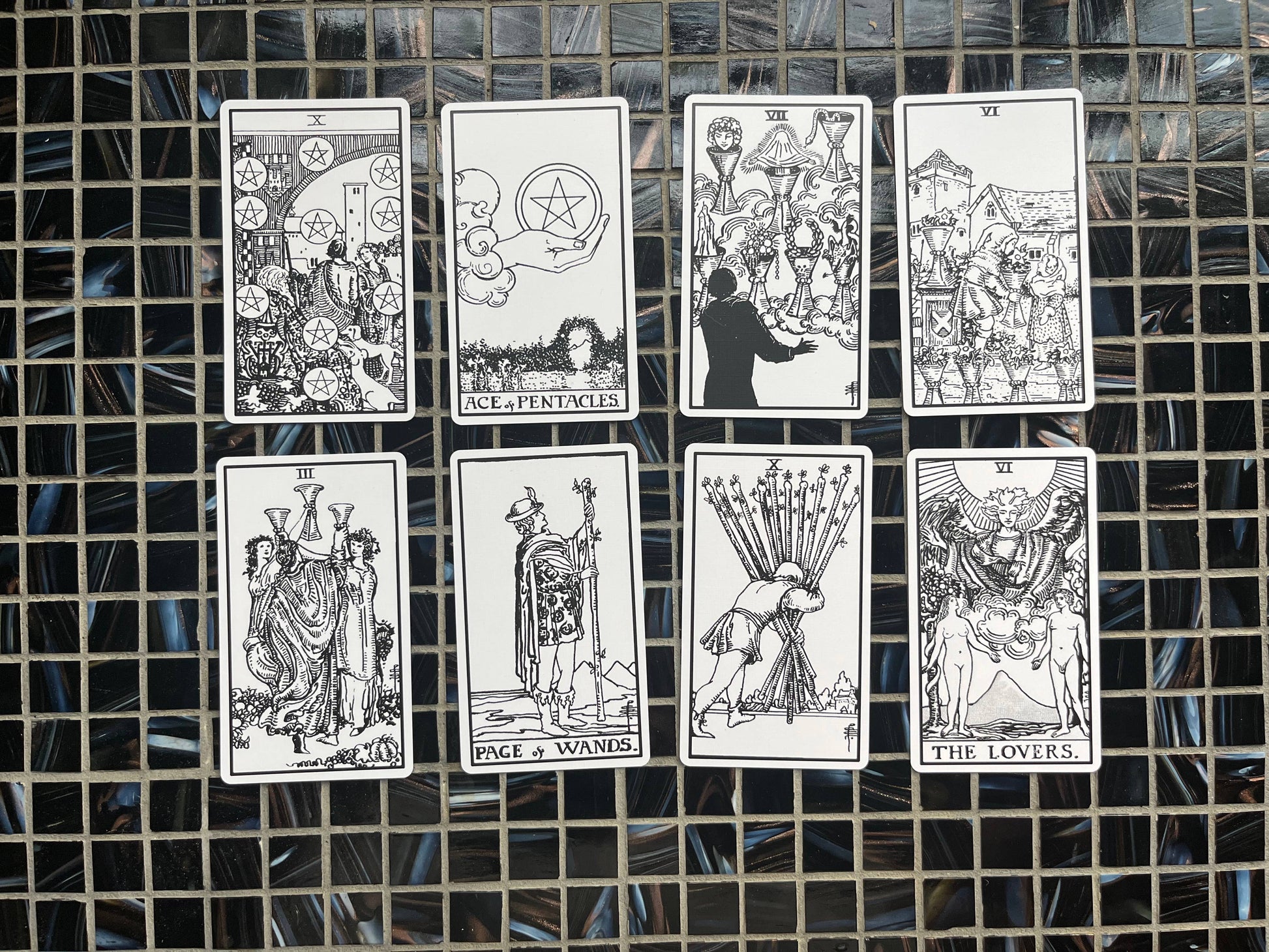 Full 78 Card Rider Waite Tarot Deck, Linen Finish, 100 Pictorial Guide, Full Size (4.75 by 2.75 inches), Great for beginners and collectors alike! Made in USA.