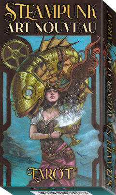 Mechanical angels, clockwork stars, adventurers of the boundless sky and of uncharted shores: THE STEAMPUNK ART NOUVEAU TAROT is this and more. It is a romantic, and yet modern feeling that imbues every card of amazing wonder and exotic beauty. Faithful to the truest Tarot tradition, the deck presents the familiar archetypes with a unique and compelling flavour.