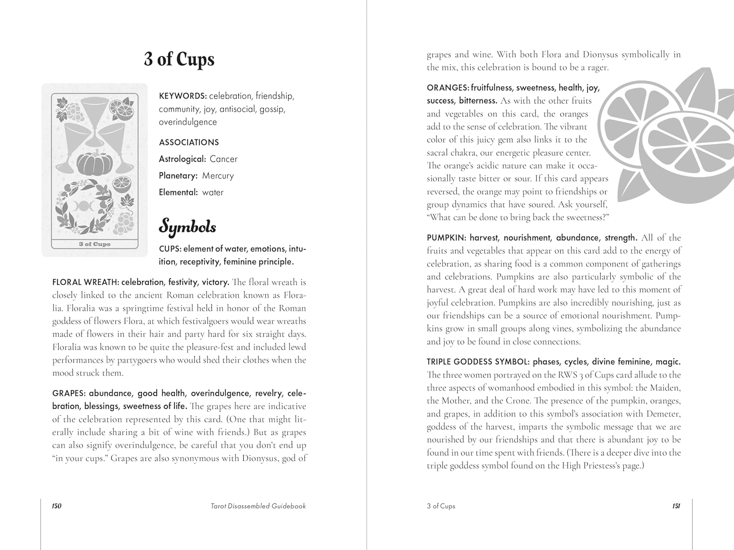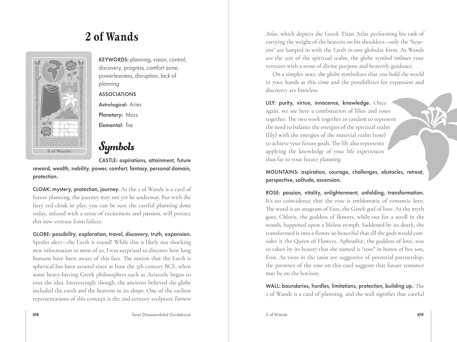 Sometimes we need to take apart a sandwich to appreciate what's in it, and the same is true for the ingredients—the individual symbols—that make up the complex picture of a tarot card. There is potential for deep understanding that comes with the act of disassembling, and the Tarot Disassembled Guidebook deconstructs each of the seventy-eight cards to look at the individual symbols.