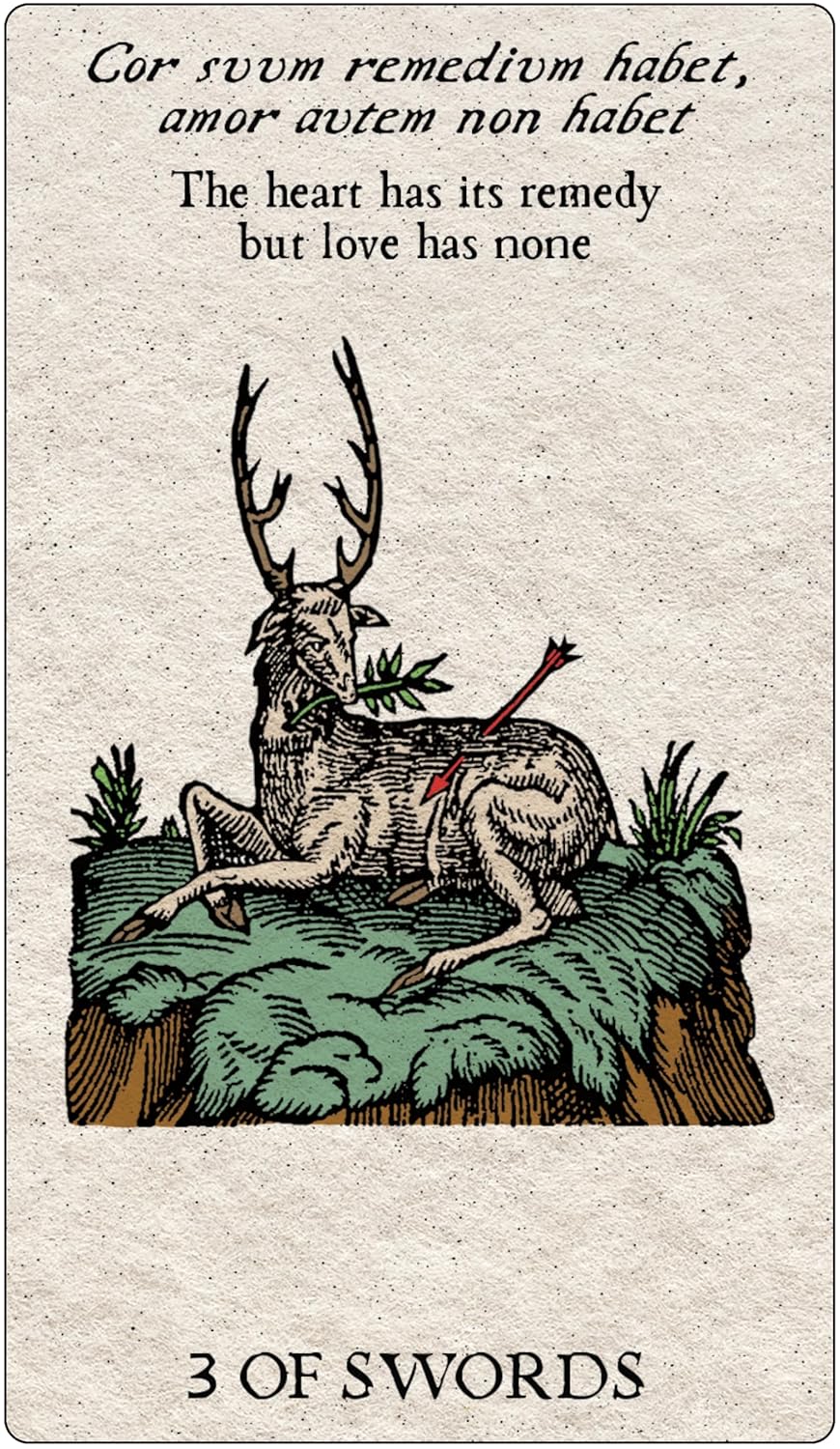 Among the many ancient and iconic images this deck portrays—plumes, helmets, swords, gemstone rings, coins, wands, clouds, wreaths, flowers, animals, and trees—Roland sees the evolution of tarot’s wands, swords, cups, and coins, as well as evocative glimmers of the Major Arcana archetypes. Both secular and religious, Renaissance emblems were meant to crystallize virtue or vice and cover every sphere of early modern knowledge: ethics, natural philosophy, politics, science, religion, love, war, and everyday life, very much in the same way that modern tarot imagery provides insight and clarity today.