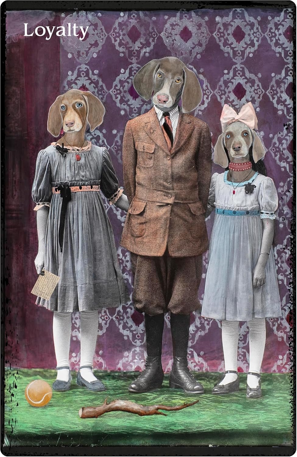 Alexandra Eldridge’s paintings employ glass-plate negatives from 1880–1920, an era when there was excitement about Darwin’s findings that emotions exist in both humans and animals. Concepts of land conservation and wildlife preservation emerged at this time, along with modernism in the arts, and the invention of photography and the X-ray. Séances, spirit photography, myriad ideas about “animal magnetism,” and occultism became popular.